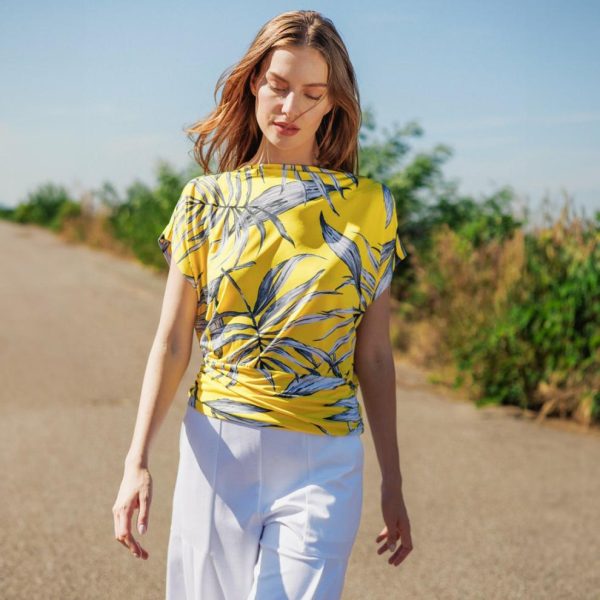 Shine bright as you bask in our Sunlit Palm Side Ruched Boat Neck Top! Featuring a boat neckline, short dolman sleeves, and a waist-hugging side ruched hemline, that displays an elegant blouson silhouette.
