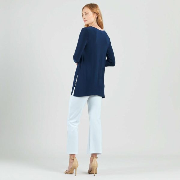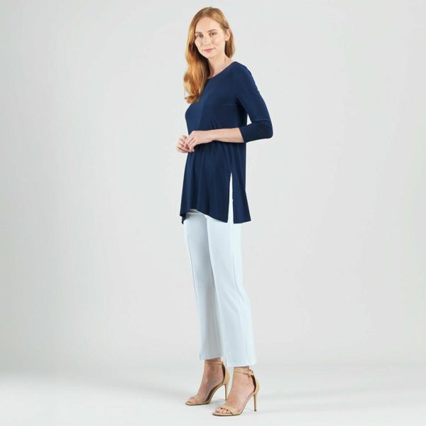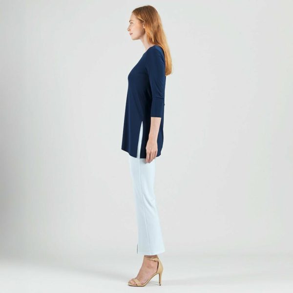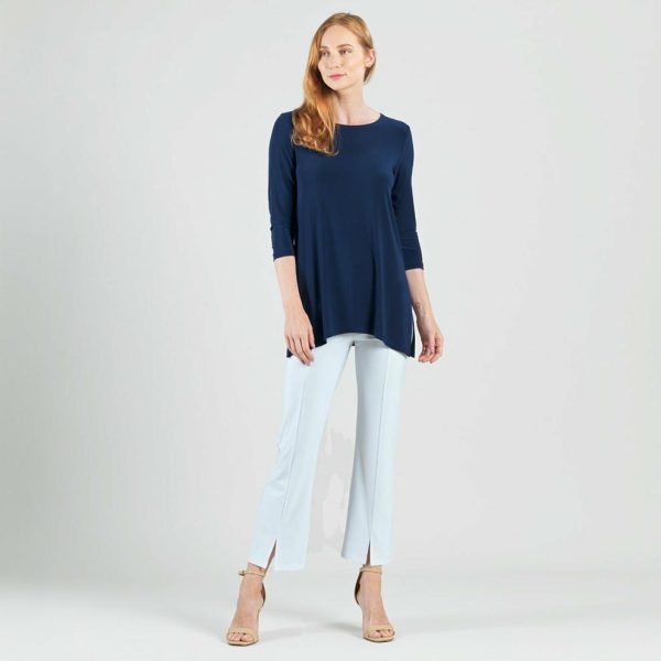 Modernize your basic pieces with our Side Vent Kerchief Hem Tunic! This tunic features a round neckline, 3/4 length sleeves, and a kerchief hemline with dual side vents that create a flattering silhouette.