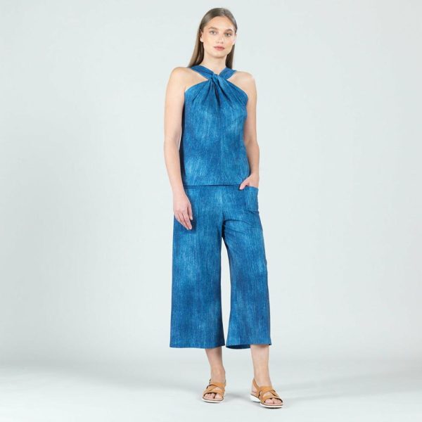 Tops Tunics | Women Clara Sunwoo Grecian Halter Top Denim Print Final Sale!