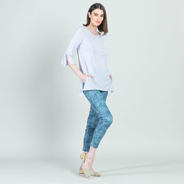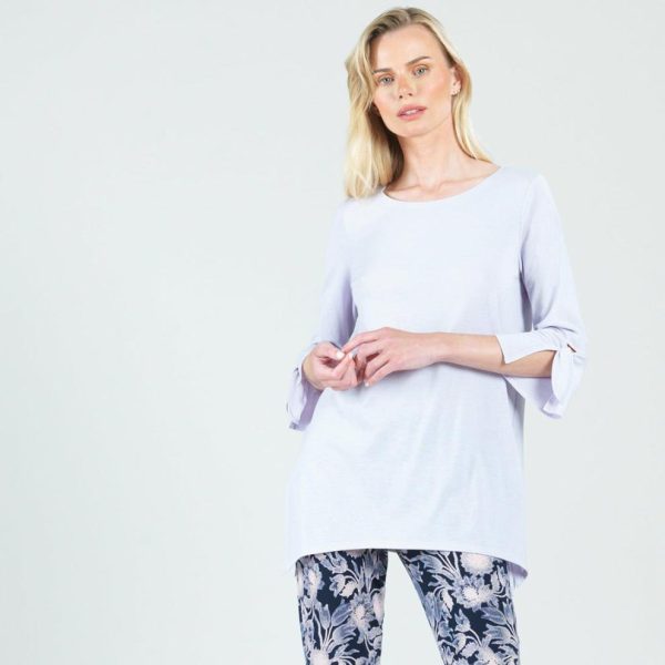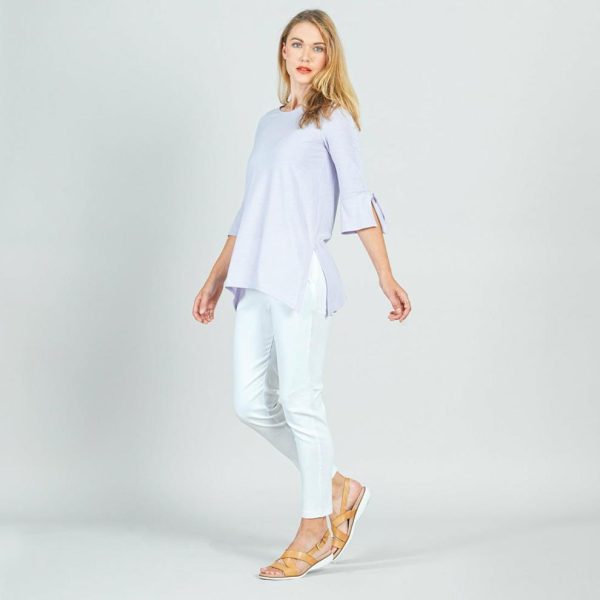 Versatility and comfort, make our Peach Skin Knit Tie Cuff Side Vent Tunic a must-have! Featuring a round neckline, and dual-sided vent hem with tie-able flared cuff details.